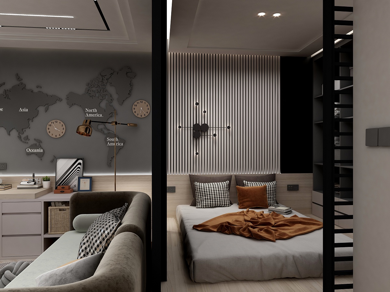 比如图中卧室利用灯带间接照亮了天花和墙壁,使空间看上去更加安静和宽敞;