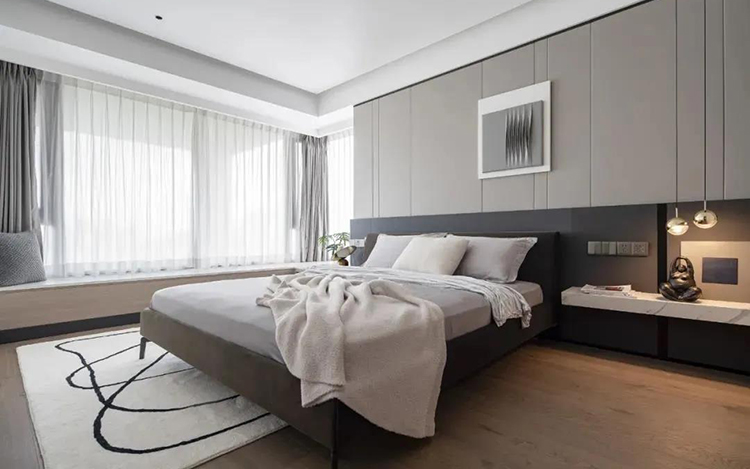 卧室是休息放松的主要空间,因此灯光要足够温馨私密,建议选择暖光源。色温应控制在2700-3000K左右,良好的照明条件和温暖浪漫的氛围都能具备,可以选择安装灯带以及防眩射灯营造氛围,丰富光线,让光环境更加柔和与舒适。